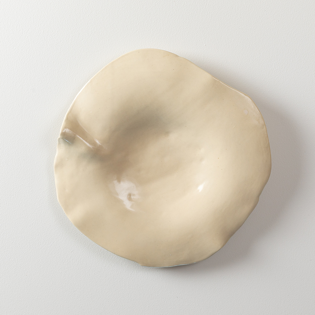 Large cream bowl with crease
