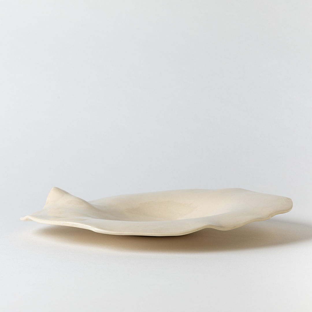 Large cream bowl with crease - Image 2